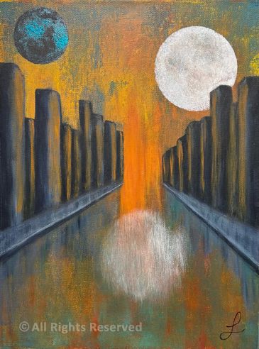 This evolving body of work reveals an introspective and intuitive side of my creative journey. Through abstract and surrealistic paintings, I explore symbolic landscapes, spiritual portals, and dreamlike terrains that reflect the mysteries of memory, emotion, and perception. Recurring motifs—moons, water, and fragmented structures—serve as visual anchors, guiding both myself and the viewer into an inner world beyond the literal.
